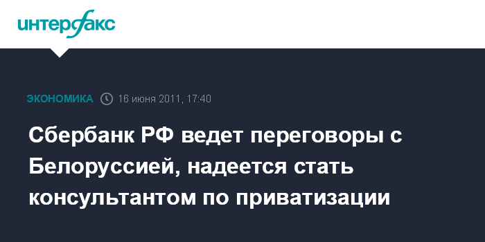 Сбербанк РФ ведет переговоры с Белоруссией, надеется стать консультантом по приватизации