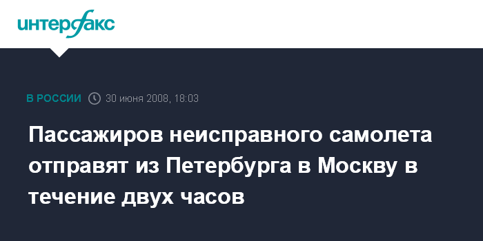 Москва. 30 июня. INTERFAX.RU - Пассажиры самолета "Аэрофлота", в котором в понедельник во время взлета произошел технический сбой, будут отправлены из петербургского аэропорта "Пулково" в Москву в течение ближайших двух часов, сообщила "Интерфаксу" представитель "Аэрофлота" Ирина Данненберг. "Часть пассажиров будет доставлена рейсом ГТК "Россия", еще часть - нашими рейсами", - сказала она, отметив, что на рейс было зарегистрирован 102 пассажира, в том числе один ребенок.