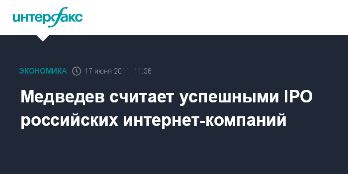 Санкт-Петербург. 17 июня. INTERFAX.RU - Капитализация российских интернет-компаний превышает десятки миллиардов долларов, заявил президент РФ Дмитрий Медведев, выступая на Петербургском экономическом форуме в пятницу.