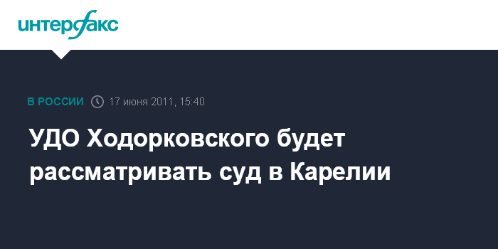 Петрозаводск. 17 июня. INTERFAX.RU - Ходатайство об условно-досрочном освобождении экс-главы ЮКОСа Михаила Ходорковского будет рассматривать суд карельского города Сегежа, сообщил "Интерфаксу" источник в правоохранительных органах Карелии.