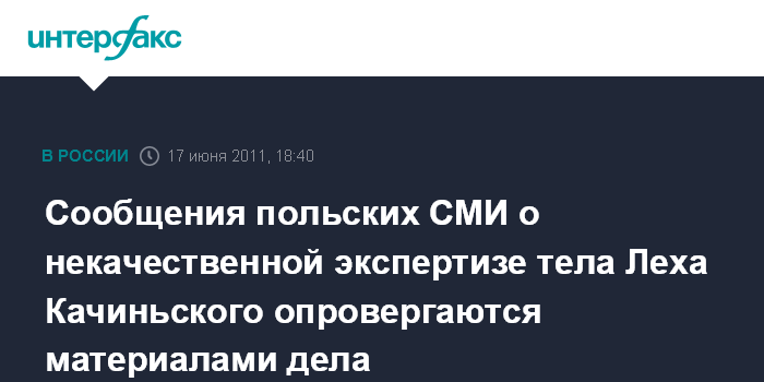 Сообщения польских СМИ о некачественной экспертизе тела Леха Качиньского опровергаются материалами дела