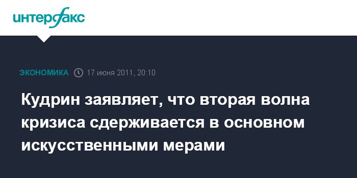 Кудрин заявляет, что вторая волна кризиса сдерживается в основном искусственными мерами