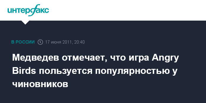 Медведев отмечает, что игра Angry Birds пользуется популярностью у чиновников