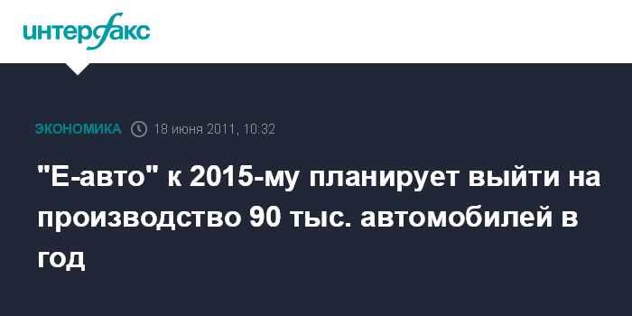 "Е-авто" к 2015-му планирует выйти на производство 90 тыс. автомобилей в год