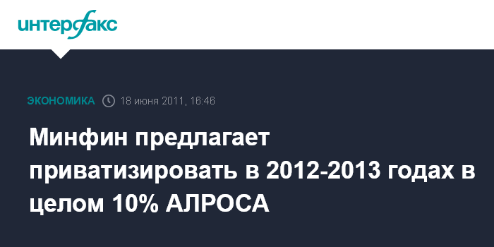 Минфин предлагает приватизировать в 2012-2013 годах в целом 10% АЛРОСА