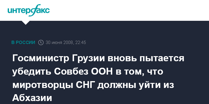 Тбилиси. 30 июня. ИНТЕРФАКС - Госминистр Грузии Темур Якобашвили, находящийся с визитом в Нью-Йорке, заявляет о необходимости изменения формата миротворческой операции в Абхазии.
