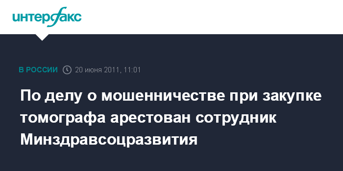 По делу о мошенничестве при закупке томографа арестован сотрудник Минздравсоцразвития