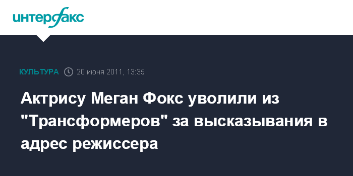 Москва. 20 июня. INTERFAX.RU – Накануне мировой премьеры картины "Трансформеры 3: Тёмная сторона Луны", которая пройдет в Москве в рамках открытия ММКФ, стали известны подробности ухода из проекта актрисы Меган Фокс.