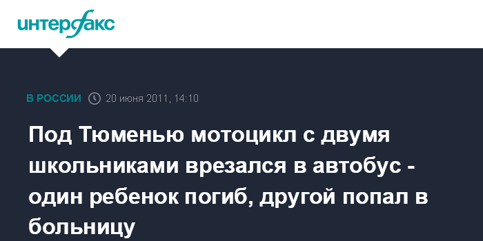 Тюмень. 20 июня. INTERFAX.RU - В Тюменской области в ДТП с участием пассажирского автобуса и мотоцикла погиб 10-летний мальчик, еще один школьник пострадал, сообщает в понедельник пресс-служба областного УГИБДД.