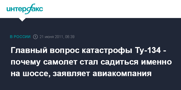 "Самолет был исправен и заправлен топливом под завязку. Главный вопрос, который предстоит выяснить комиссии по расследованию причин катастрофы, почему Ту-134 начал приземление не на взлетно-посадочную полосу, а на автомагистраль", - отметил представитель авиаперевозчика.