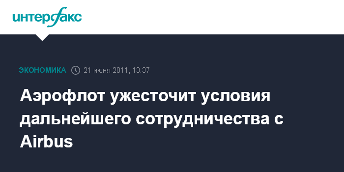 Ле Бурже (Франция). 21 июня. INTERFAX.RU - ОАО "Аэрофлот - российские авиалинии" ужесточит условия дальнейшего сотрудничества с Airbus, сообщил журналистам источник в российской авиакомпании во вторник в кулуарах выставки в Ле Бруже.