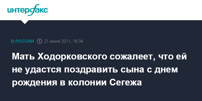 Мать Ходорковского сожалеет, что ей не удастся поздравить сына с днем рождения в колонии Сегежа