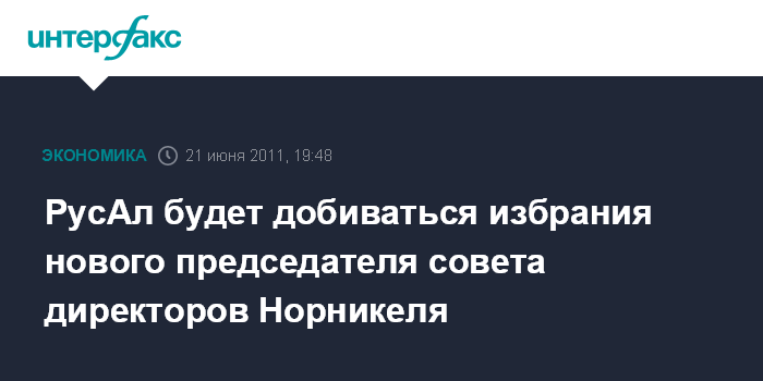 РусАл будет добиваться избрания нового председателя совета директоров Норникеля