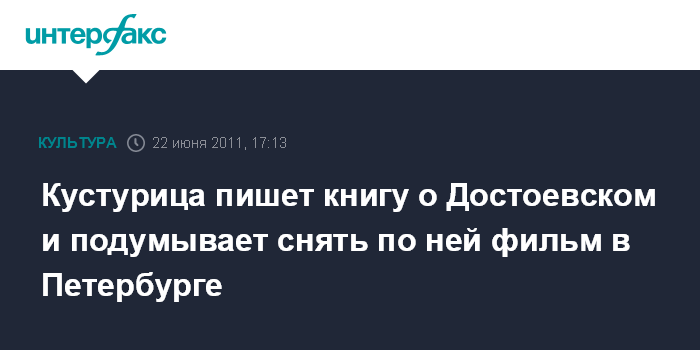 Санкт-Петербург. 22 июня. INTERFAX.RU - Сербский режиссер и музыкант Эмир Кустурица пишет книгу о Достоевском "Дорогой мой Федор" и не исключает возможность снять по ней фильм в Петербурге.