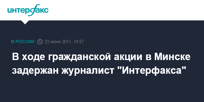 Минск. 22 июня. INTERFAX.RU - В ходе несанкционированной гражданской акции белорусские правоохранительные органы задержали журналиста агентства "Интерфакс-Запад" Руслана Риндевича, который по редакционному заданию был направлен для освещения событий на Октябрьской площади в Минске в качестве фотокорреспондента.