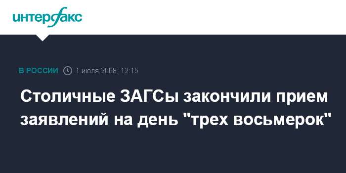 Столичные ЗАГСы закончили прием заявлений на день "трех восьмерок"