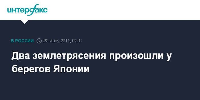 Лондон. 23 июня. ИНТЕРФАКС - На северо-востоке Японии с интервалом в минуту произошли два землетрясения магнитудой 6,8 и 6,7, сообщает британская телерадиовещательная корпорация Би-би-си со ссылкой на Геологическую службу США.
