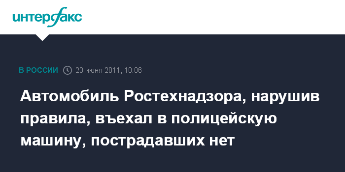 Москва. 23 июня. INTERFAX.RU - На востоке столицы автомобиль Московского управления Федеральной службы по экологическому, технологическому и атомному надзору столкнулся с полицейским "Фордом", сообщил "Интерфаксу" в четверг источник в правоохранительных органах города.
