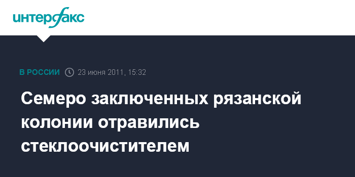 Рязань. 23 июня. INTERFAX.RU - На авторемонтном участке промышленной зоны в ИК-2 УФСИН России по Рязанской области семеро заключенных получили тяжелое пищевое отравление, выпив жидкость для омывания стекол. Двое пострадавших скончались.