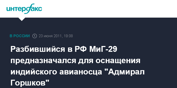Разбившийся в РФ МиГ-29 предназначался для оснащения индийского авианосца "Адмирал Горшков"