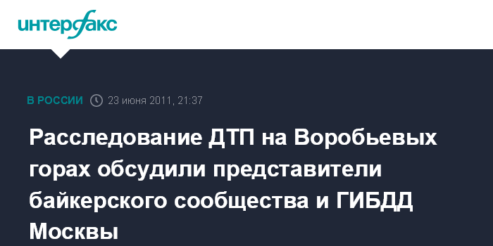 Москва. 23 июня. INTERFAX.RU - По инициативе московской полиции состоялась встреча представителей байкеров с руководством ГУ МВД России по Москве для обсуждения ситуации с расследованием уголовного дела о ДТП, в котором водитель спорткара Porsche Panamera 8 июня на Воробьевых горах тяжело ранил мотоциклиста Рауфа Абзалова.
