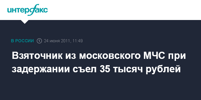 Москва. 24 июня. INTERFAX.RU - Сотрудник московского подразделения МЧС при задержании с поличным в туалете съел на глазах у полицейских 35 тысяч рублей, сообщили в столичном управлении СК РФ.