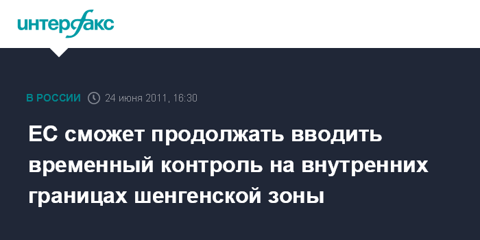 Брюссель. 24 июня. INTERFAX.RU - Лидеры стран ЕС на саммите в Брюсселе договорились в пятницу, что за государствами шенгенской зоны сохраняется право на временное введение контроля на внутренних границах.