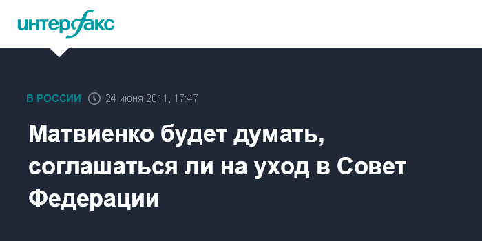 Санкт-Петербург. 24 июня. INTERFAX.RU - Губернатор Петербурга Валентина Матвиенко заявляет, что ей нужно время на размышление по поводу возможности стать сенатором.