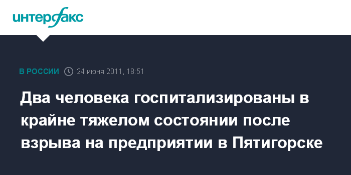 Два человека госпитализированы в крайне тяжелом состоянии после взрыва на предприятии в Пятигорске
