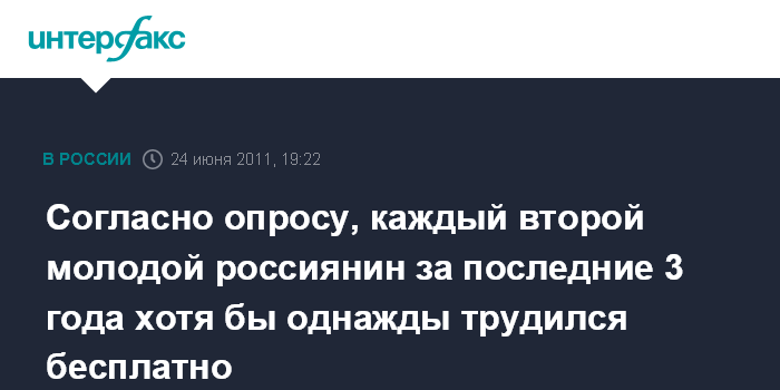 Согласно опросу, каждый второй молодой россиянин за последние 3 года хотя бы однажды трудился бесплатно