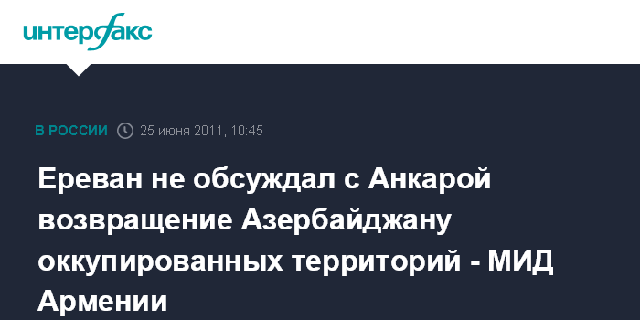 Ереван не обсуждал с Анкарой возвращение Азербайджану оккупированных территорий - МИД Армении