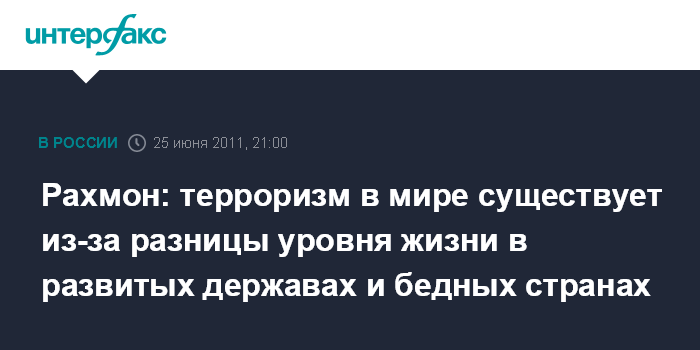 Рахмон: терроризм в мире существует из-за разницы уровня жизни в развитых державах и бедных странах
