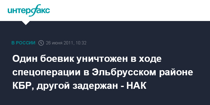 Москва. 26 июня. INTERFAX.RU - Информационный центр Национального антитеррористического комитета сообщает о ходе спецоперации по обезвреживанию членов бандитского подполья, действующего на территории Эльбрусского района Кабардино-Балкарской республики.