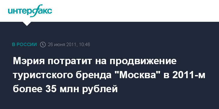 Мэрия потратит на продвижение туристского бренда "Москва" в 2011-м более 35 млн рублей