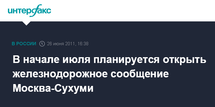 В начале июля планируется открыть железнодорожное сообщение Москва-Сухуми