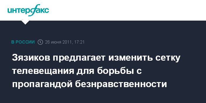 Зязиков предлагает изменить сетку телевещания для борьбы с пропагандой безнравственности
