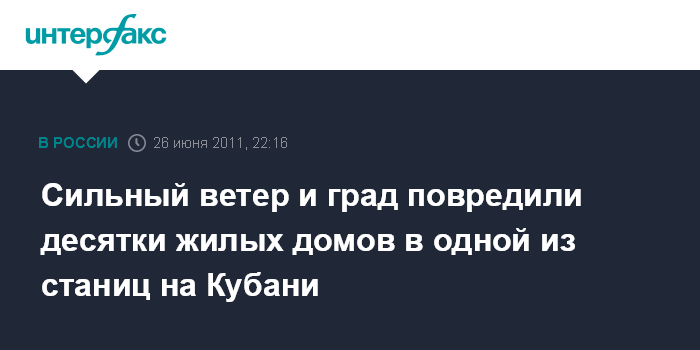 Ростов-на-Дону. 26 июня. ИНТЕРФАКС-ЮГ - Жилые дома и сельскохозяйственные угодья повреждены в результате сильного ветра и града в станице Новоалексеевской и на хуторе Высокий в Курганинском районе Краснодарского края, сообщили агентству "Интерфакс-Юг" в пресс-службе Южного регионального центра МЧС России.