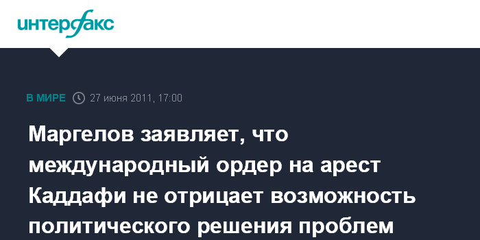 Маргелов заявляет, что международный ордер на арест Каддафи не отрицает возможность политического решения проблем Ливии