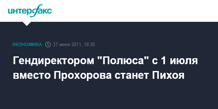 Гендиректором "Полюса" с 1 июля вместо Прохорова станет Пихоя