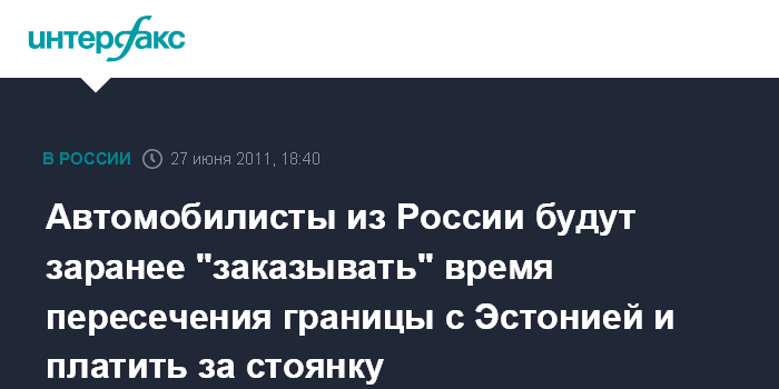 Таллин. 27 июня. INTERFAX.RU - В Эстонии с 1 августа вводится новая система электронного бронирования времени пересечения границы с Россией.