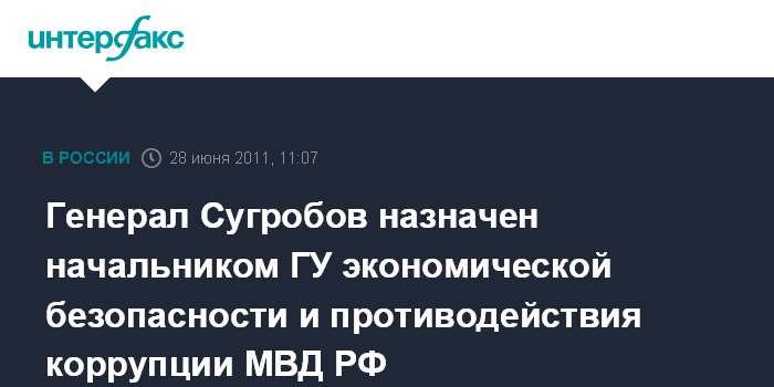 Генерал Сугробов назначен начальником ГУ экономической безопасности и противодействия коррупции МВД РФ