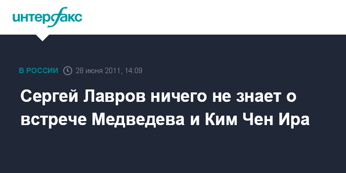 Сергей Лавров ничего не знает о встрече Медведева и Ким Чен Ира