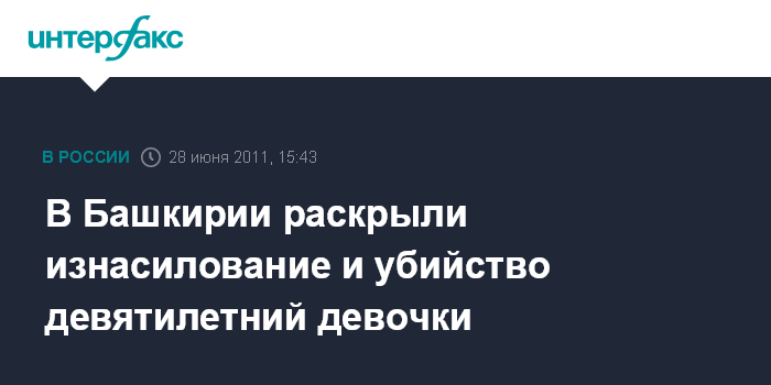 Уфа. 28 июня. INTERFAX.RU - В Благовещенском районе Башкирии арестован местный житель, подозреваемый в изнасиловании и убийстве девятилетней девочки, сообщил начальник уголовного розыска МВД по Башкирии Владислав Горкавцев на пресс-конференции во вторник.
