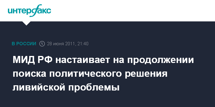 МИД РФ настаивает на продолжении поиска политического решения ливийской проблемы
