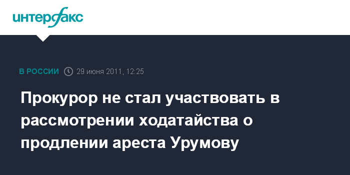 Москва. 29 июня. INTERFAX.RU - Генпрокуратура отказалась участвовать в рассмотрении ходатайства следствия о продлении ареста бывшему начальнику управления Московской областной прокуратуры Дмитрия Урумова.
