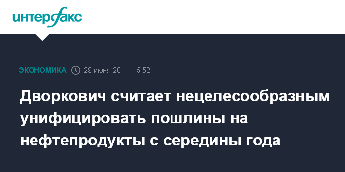 Горки.29 июня. INTERFAX.RU - Введение системы унификации пошлин на светлые и темные нефтепродукты 60/66 в середине года нецелесообразно, считает помощник президент РФ Аркадий Дворкович.