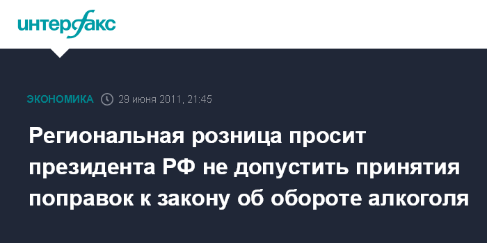 Региональная розница просит президента РФ не допустить принятия поправок к закону об обороте алкоголя