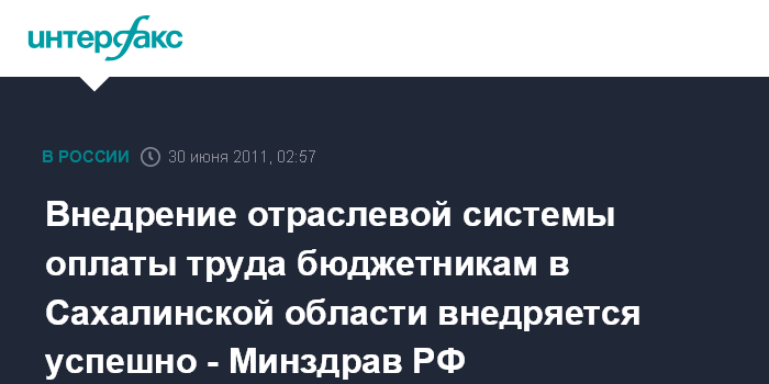 Внедрение отраслевой системы оплаты труда бюджетникам в Сахалинской области внедряется успешно - Минздрав РФ