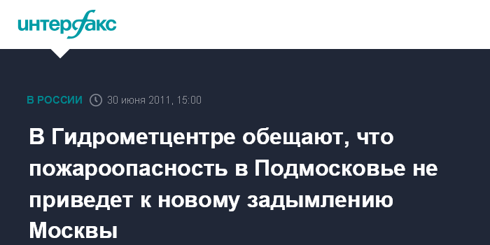 Москва. 30 июня. INTERFAX.RU - Москва не будет задымлена, несмотря на усиление пожароопасности на востоке Подмосковья, заявил директор Гидрометцентра России Роман Вильфанд.