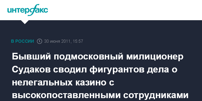 Согласно материалам дела, О.Судаков поддерживал тесный контакт с организаторами подпольных казино, а также организовывал для фигурантов дела деловые встречи с высокопоставленными сотрудниками ГУВД Московской области.